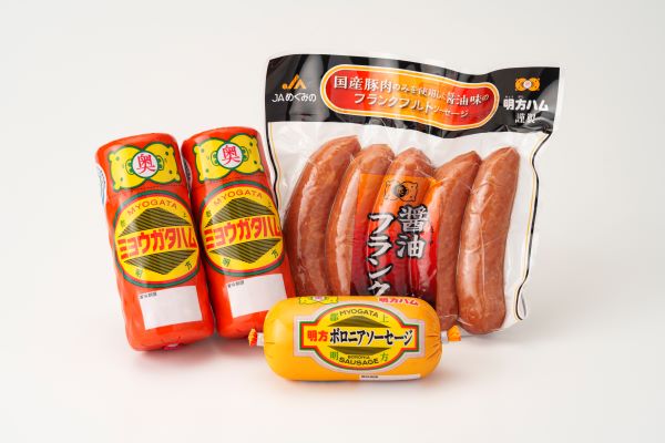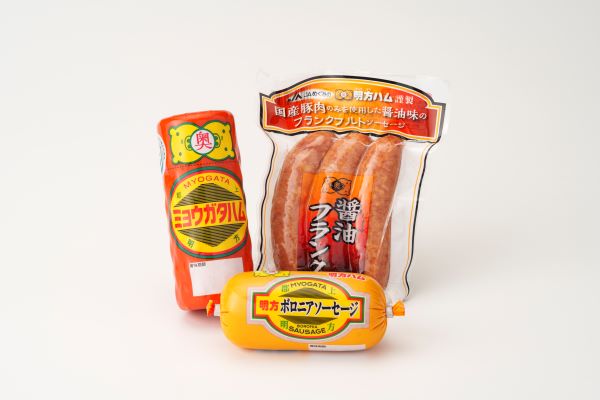 明方ハム2本、ボロニアソーセージ1本、醤油フランク5本入りセット