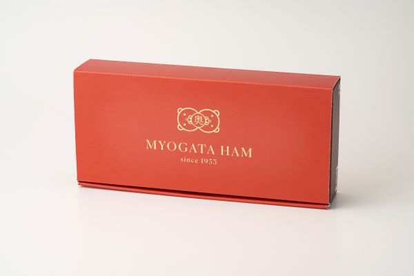 今回のセットは、明方ハムレギュラー1本を専用の化粧箱に入れ、オリジナル包装紙にて包装した商品となります。